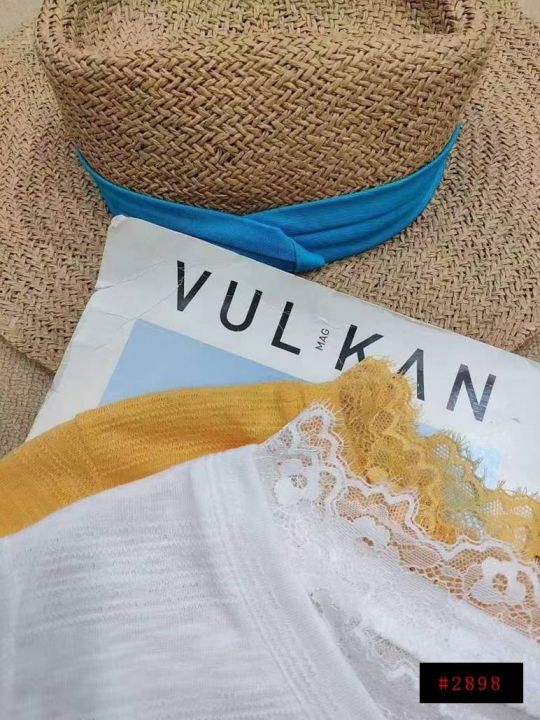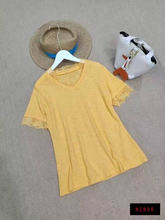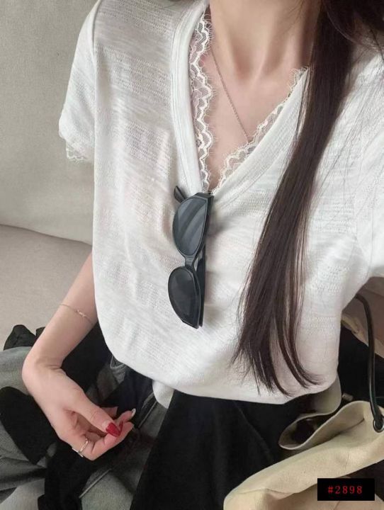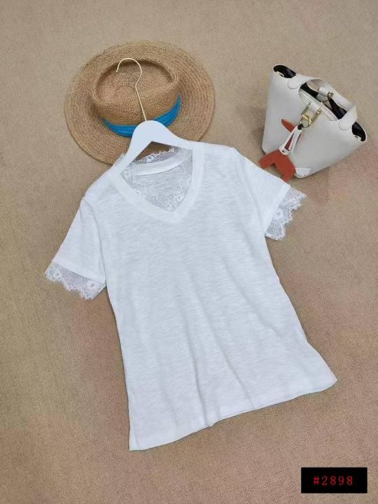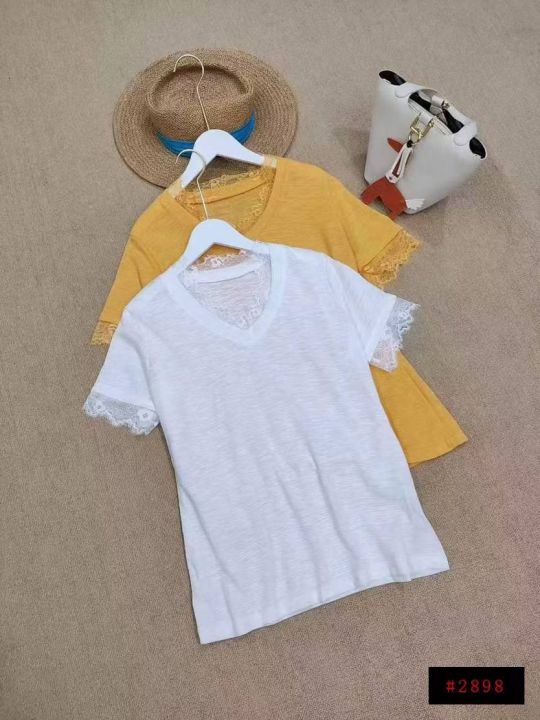 [月亮]:美式设计感蕾丝拼接休闲短袖