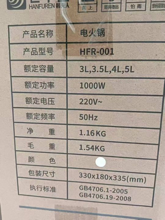 韩国火锅1812个1000W功率,毛重:1.54KG包装尺寸:33*...