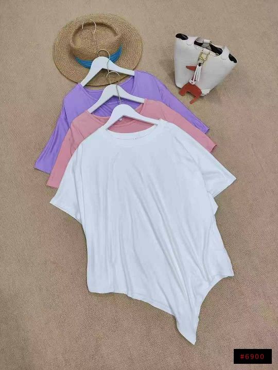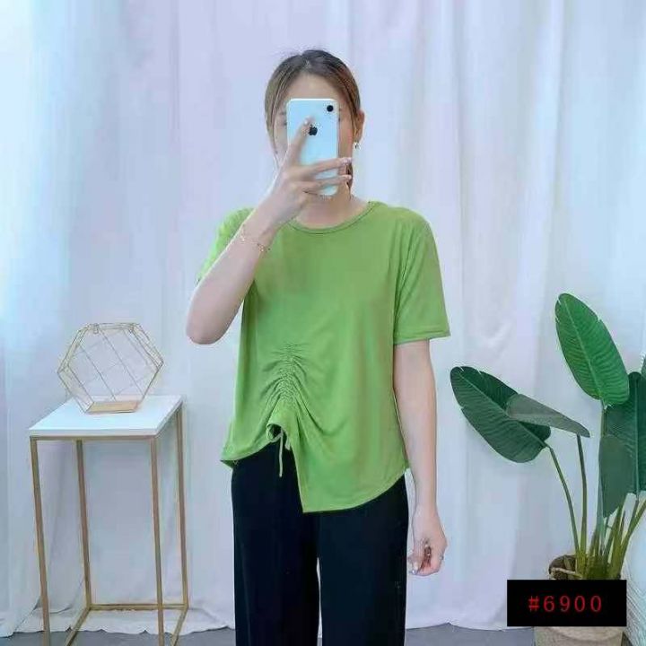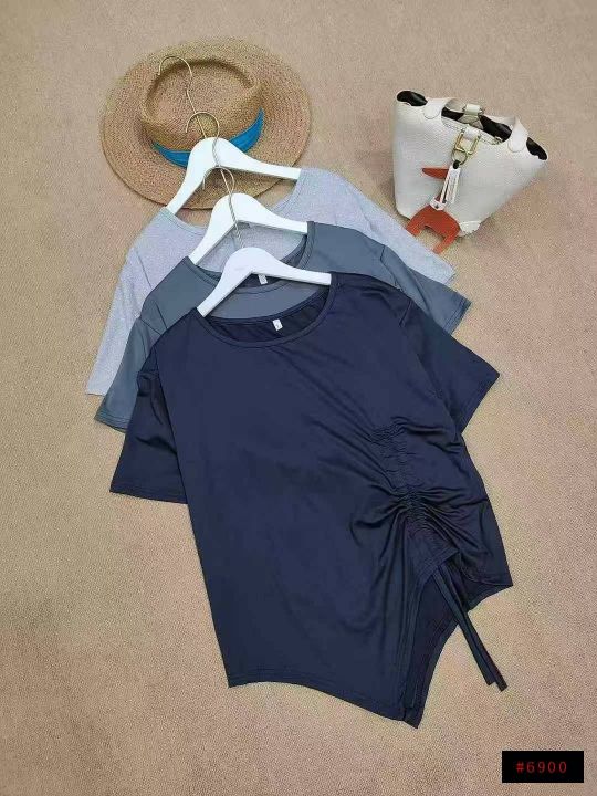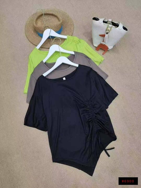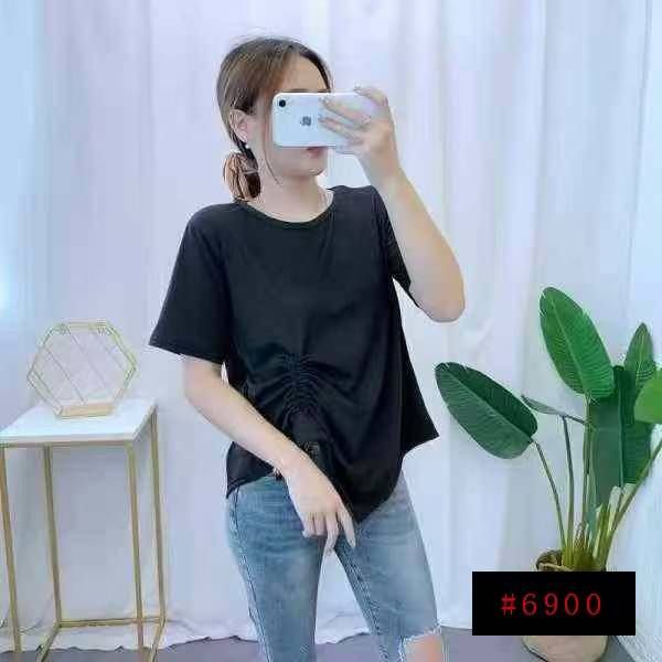 [月亮]:不规则抽绳收腰设计休闲宽松T恤