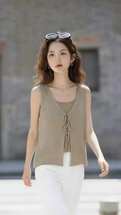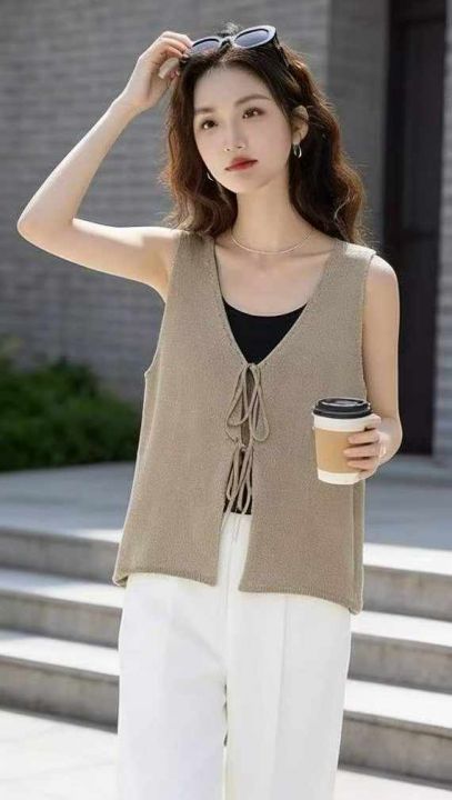 夏季新款净版简约绑袋针织毛衣马甲,独立包装,码数S-...