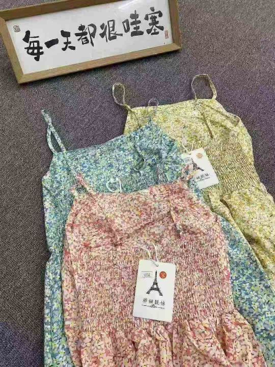 碎花吊带连衣裙643件8.9,后背松紧,肩带可调节,码数...