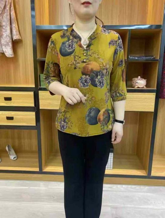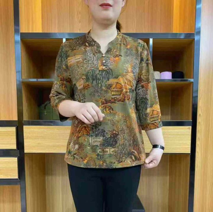 [月亮]:25年夏季新款中年气质妈妈立领上衣