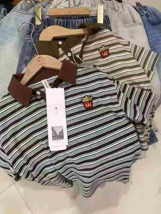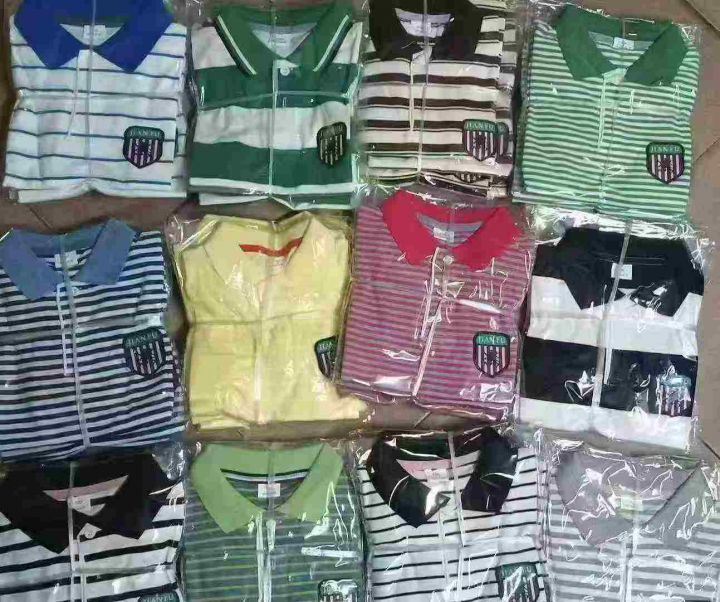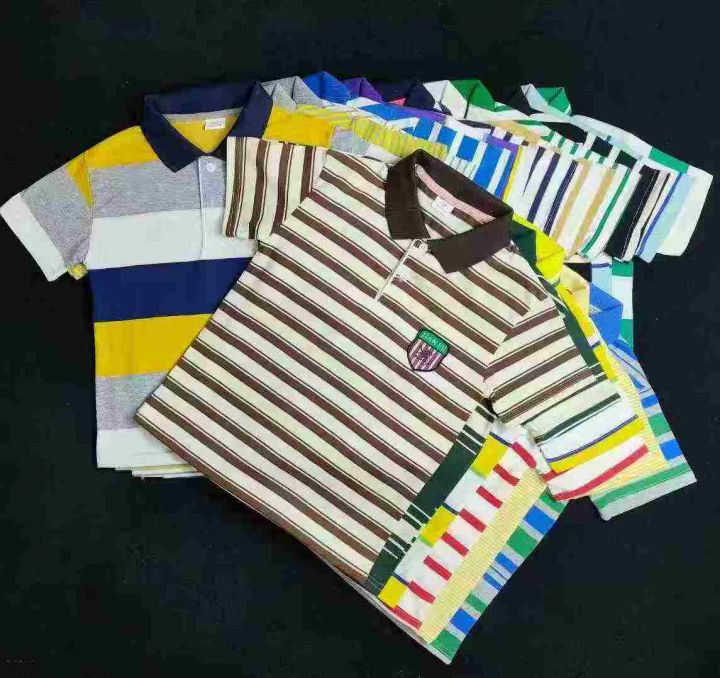 ☕️儿童翻领短袖T恤2800件全清9.8分货10.8 ,一包齐色齐码数100 110 120 130,合适3-8岁,纯棉单款一个花型条纹多颜色,童装polo翻领条纹短袖T恤