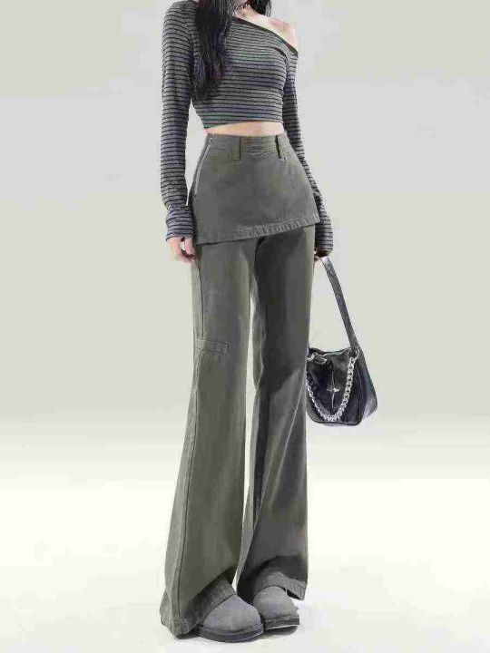 [發]胖妹妹女假两件微喇叭工装裤80件