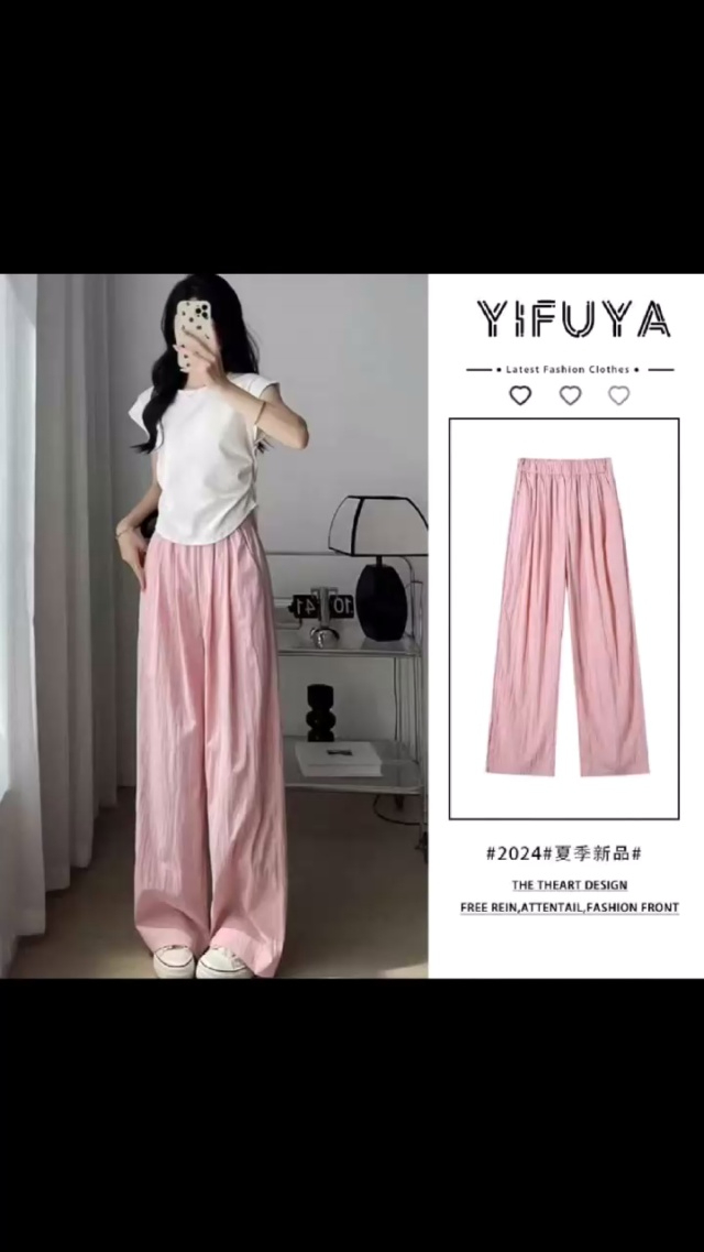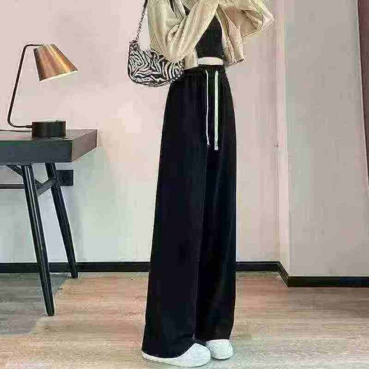 韩版简约春秋款女士雪尼尔灯芯绒垂感阔腿抽绳休闲直筒裤.图片款两种面料M-...