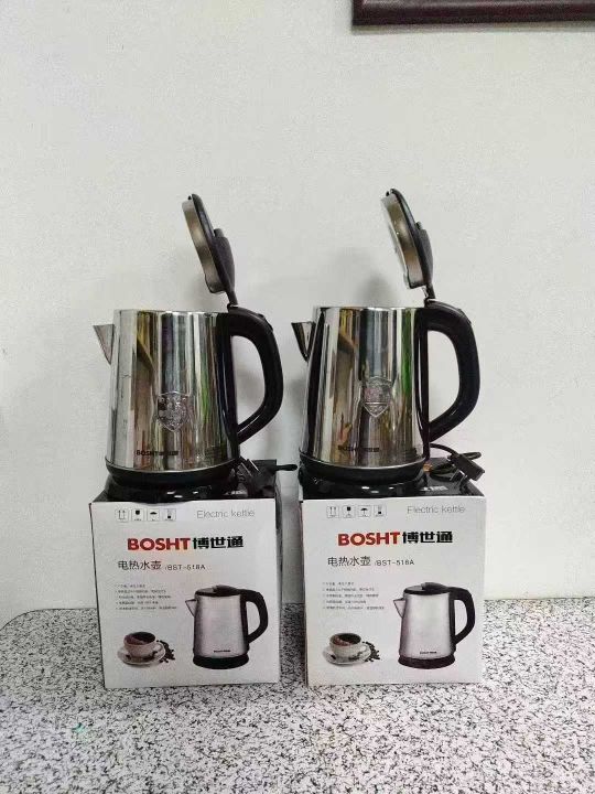 博世通国标1.8升电热水壶 0.5厚不锈钢 双金温控 全铜线 超大内钢盖 原包原件现货3000pcs