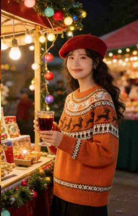 秋冬秋款宽松慵懒风提花加厚北极绒套头毛衣,独立包装...