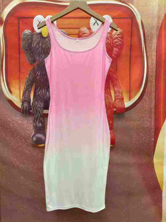 外贸时尚连衣裙,非常哇塞的渐变色U领收腰连衣裙,独立包装S到2XL码共849条全清5.8条一条