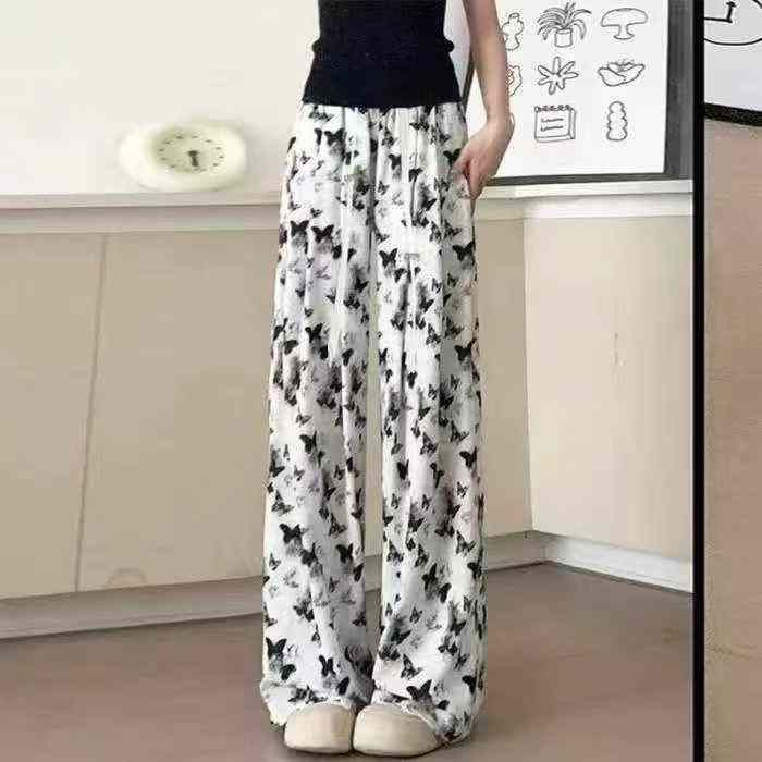 7.8元[太阳]编号2女装冰丝长裤,夏季新款扎染垂感阔腿裤女夏季蝴蝶印花宽松...