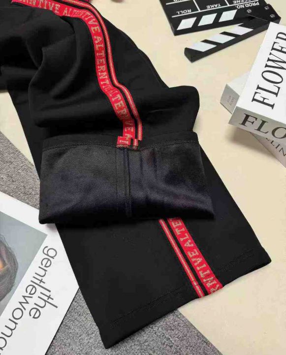 天猫精选170条,秋冬字母侧边条纹宽松直筒休闲加绒阔...