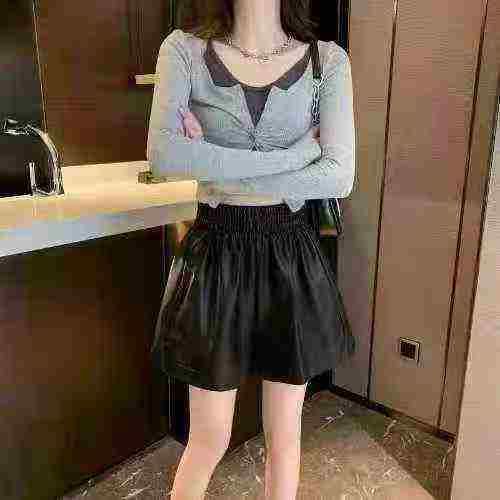 上新全清:8.8一件时尚气质PU皮松紧腰遮肉显瘦短裤,[爱心]65件左右,码数M...