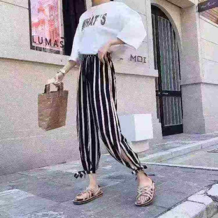 上新全清:5.8一件高级感黑白条纹独特别致休闲长裤,[爱心]125件左右,码数...