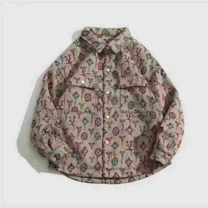全清16.879件大码肥佬男装 潮牌vintage复古编织提花满印长袖衬衫男春秋款网...