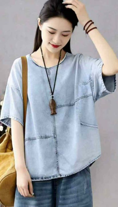 夏季新款洗水棉宽松大版牛仔T桖,独立包装,码数2XL、...