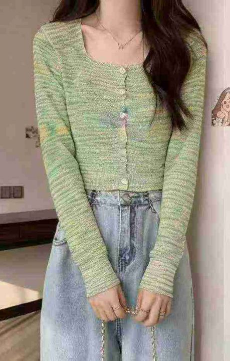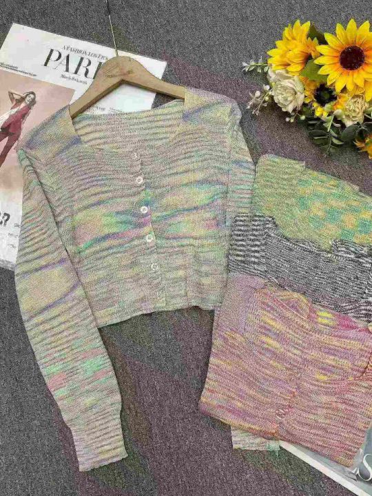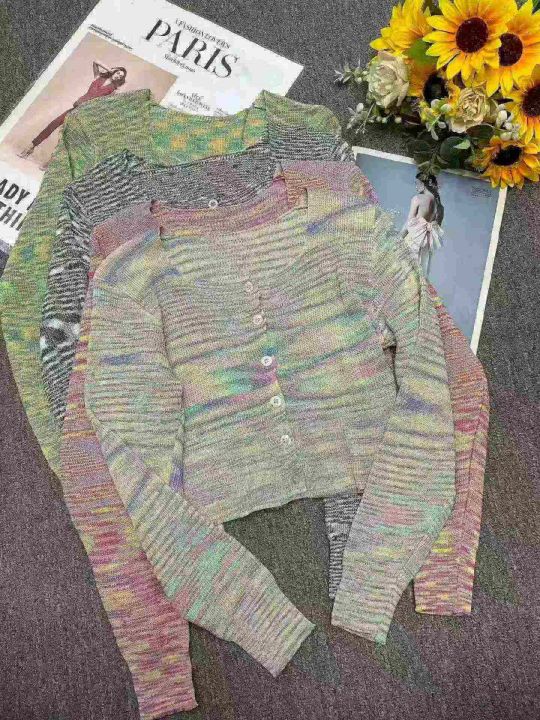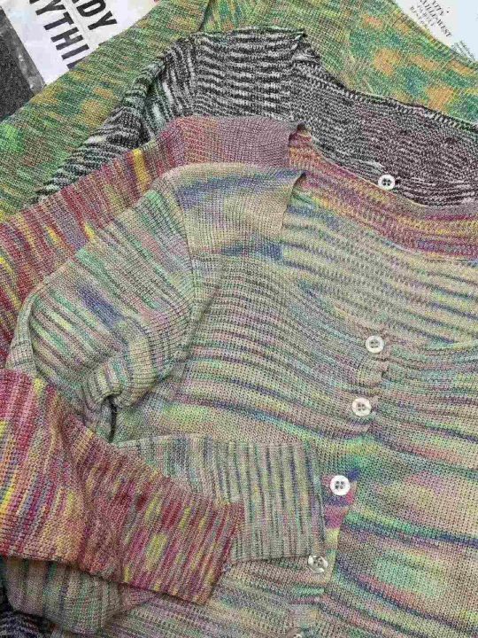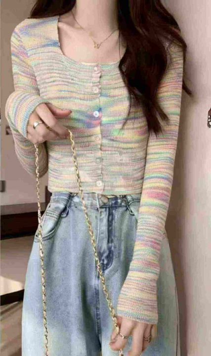 春秋新款网红复古撞色彩虹条纹针织毛衣开衫,独立包装...