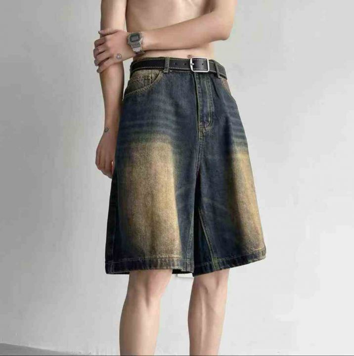 牛仔短裤男士夏季新款美式复古vibe高街潮牌休闲宽松五...