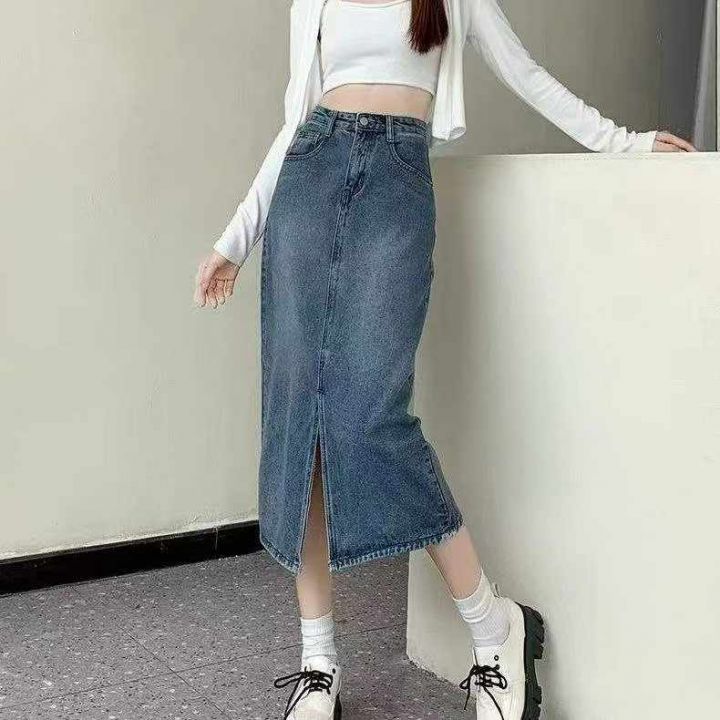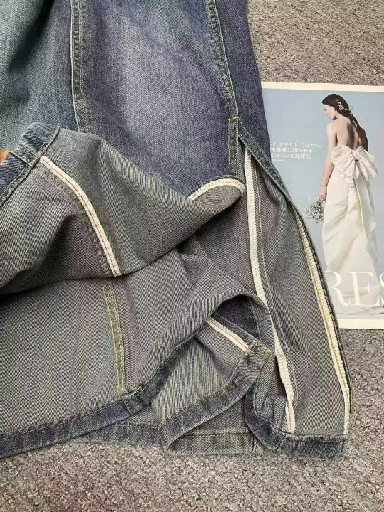 春秋新款洗水棉网红开叉牛仔半身长裙,独立包装带吊牌...