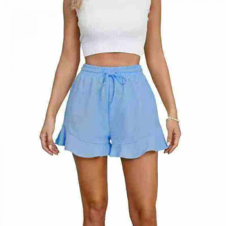 830条高品质棉麻荷叶边松紧腰抽绳设计短裤,宽松休闲大版型,单款多色,品...