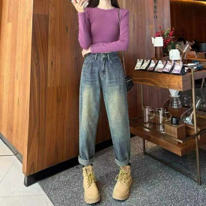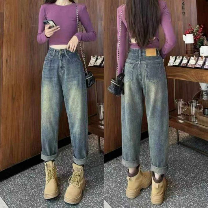 秋冬新款洗水棉网红哈伦牛仔老爹裤,独立包装带吊牌,...