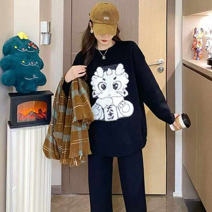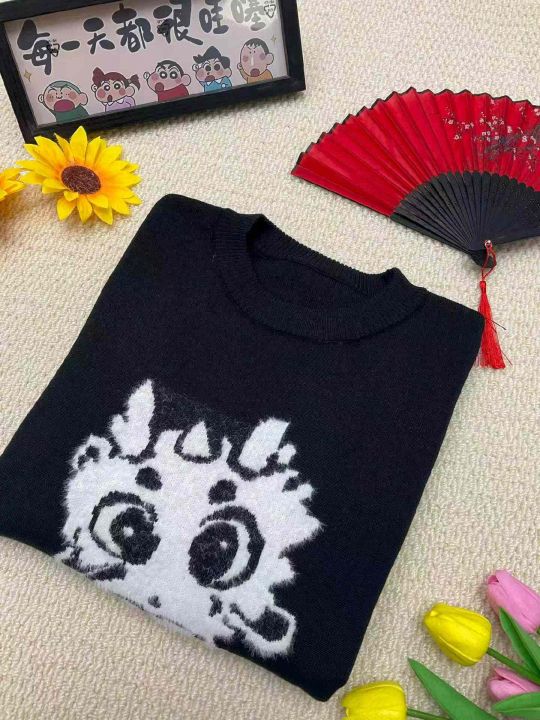 秋冬新款加厚北极绒卡通提花圆领套头毛衣,独立包装,...