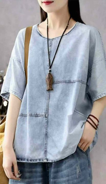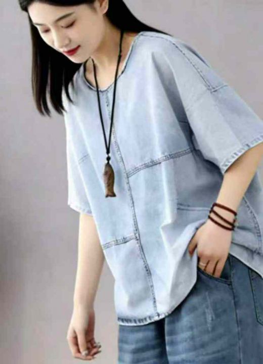 夏季新款洗水棉宽松大版牛仔T桖,独立包装,码数2XL、...