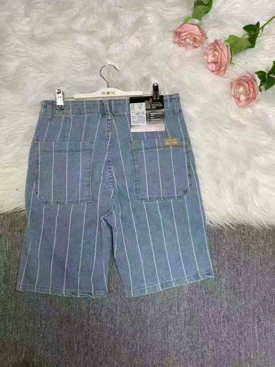 弹力条纹短裤男生外穿夏季薄款休闲中裤网红潮流百搭五分牛仔裤300件,图片...