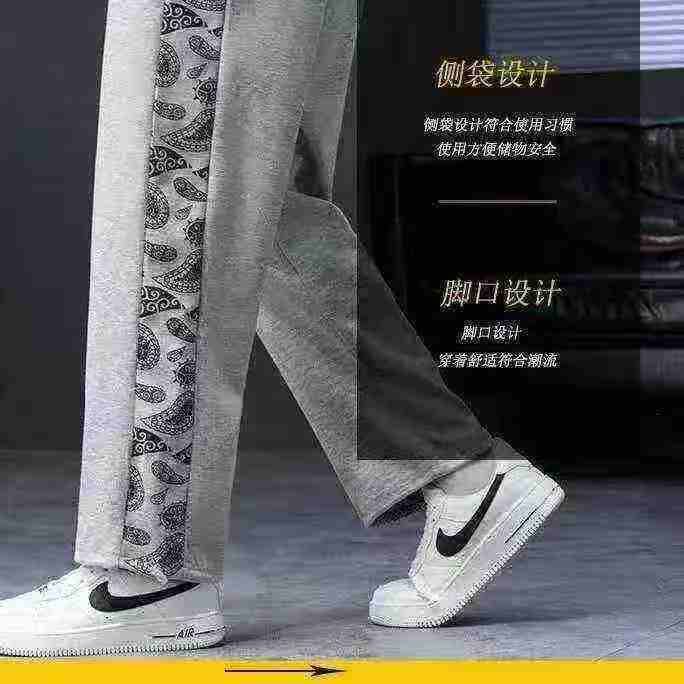男士潮流拼色百搭阔腿休闲裤,脚口抽绳设计,可束脚可...