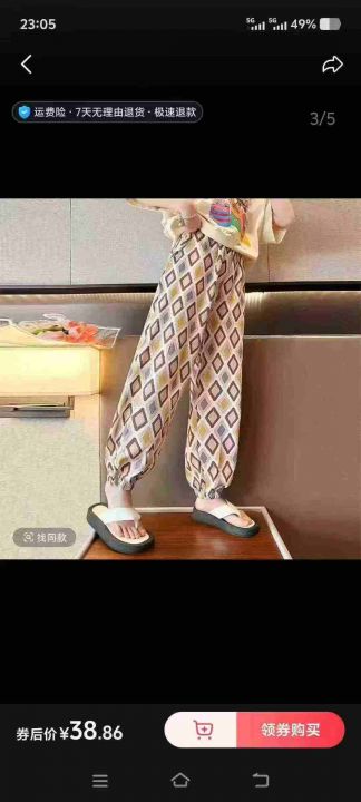 中大童时尚印格冰丝裤,面料冰爽丝滑垂感有弹力,98件,2-7码,独立包装吊牌,全清4.8元,不分货