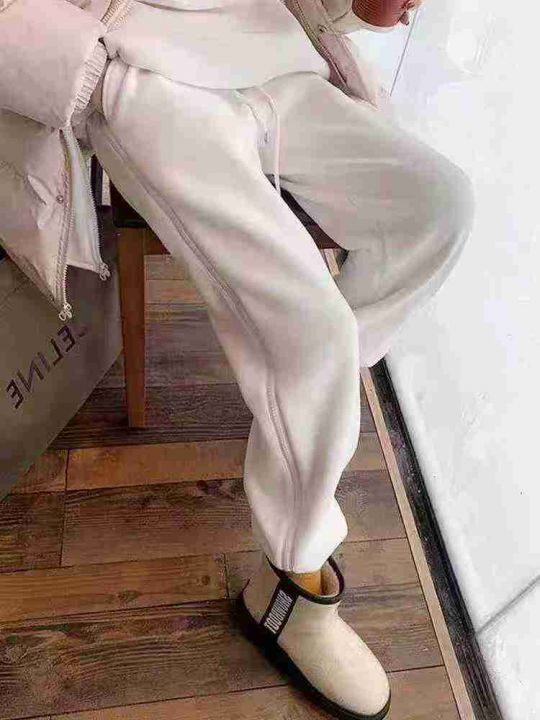 405条白色休闲高腰加绒裤子女装秋冬季直筒束脚卫裤,...