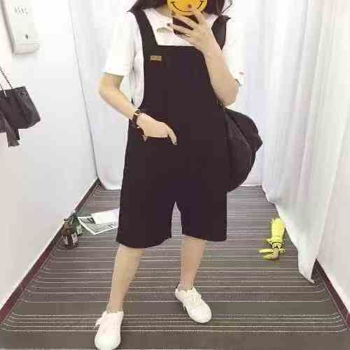 上新全清:6.8一件简约纯色宽松遮肉显瘦背带短裤,[爱...