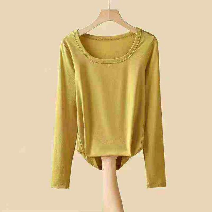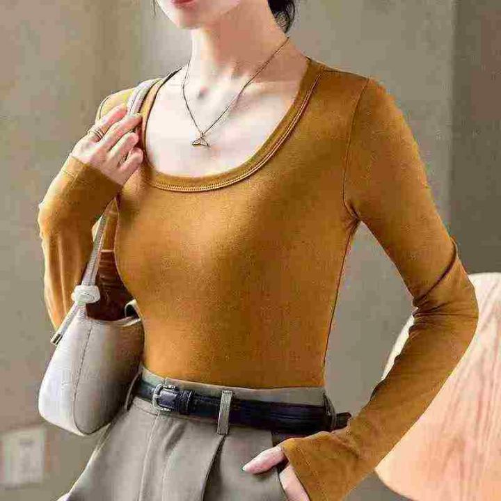方领内搭打底衫新款女U领长袖t恤春秋冬季百搭修身上衣,数量343件,S-3XL,独立包装,货品干净。