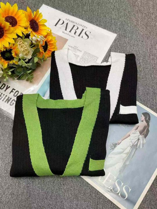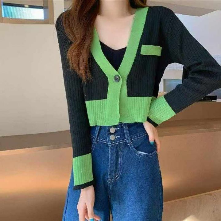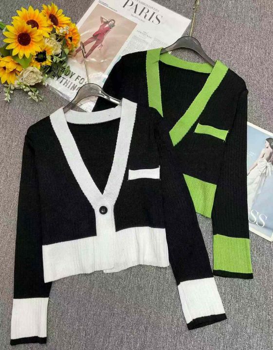 春秋新款复古港味撞色一粒扣针织毛衣开衫,独立包装,...