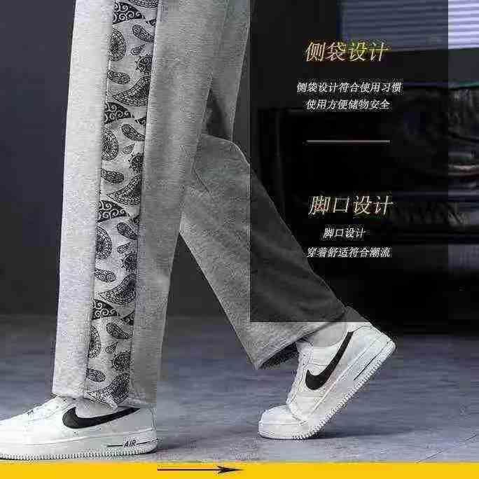 男士潮流拼色百搭阔腿休闲裤,脚口抽绳设计,可束脚可...