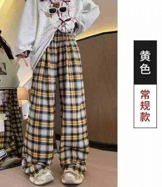 全清价6.9元气质薄绒直筒格子裤宽松显瘦高腰秋裤,独...