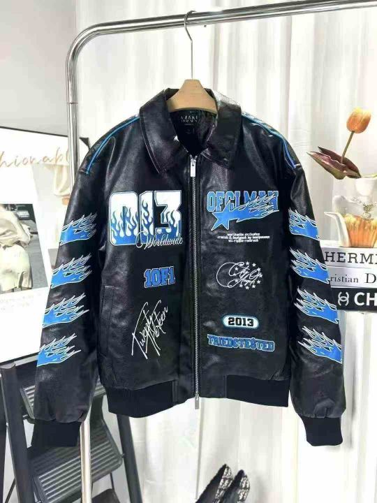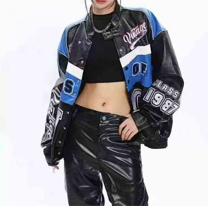 260件美式复古字母刺绣机车棒球服赛车皮衣夹克棉服外...