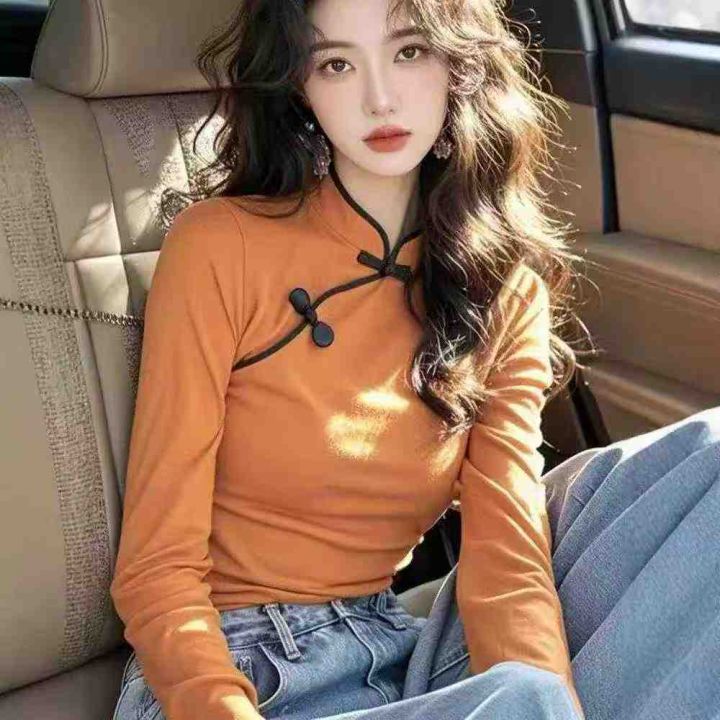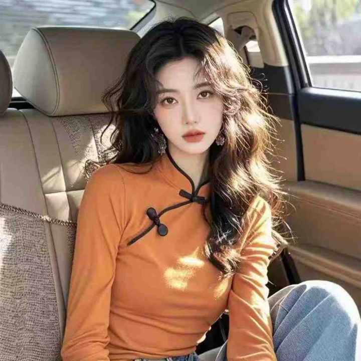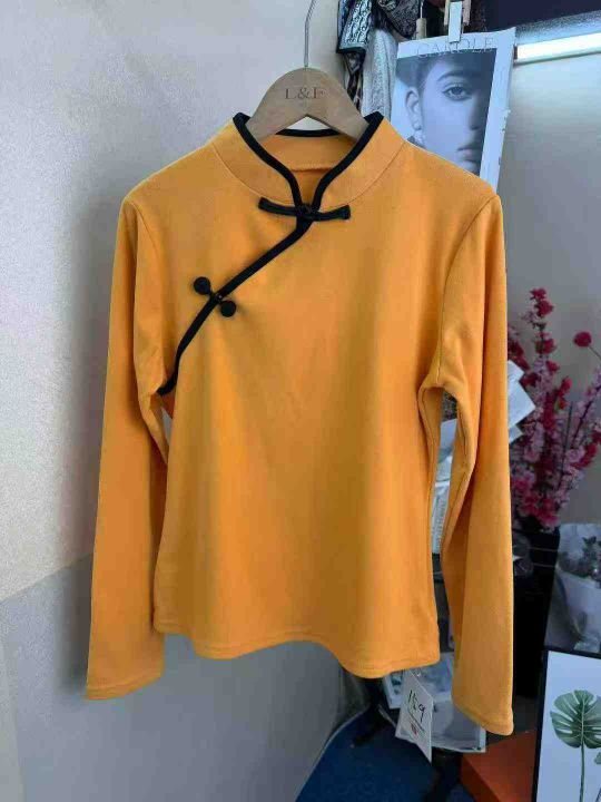 新中式国风盘扣橙色立领长袖上衣,单款单色,独立包装...