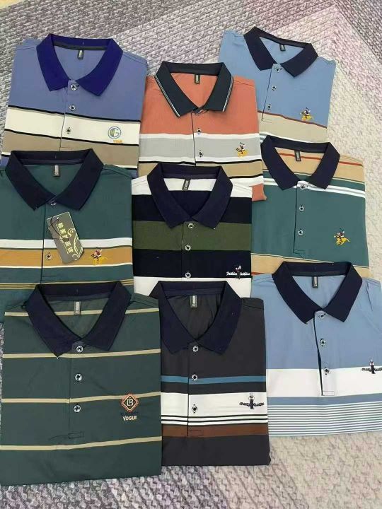高品质男装大条纹刺绣翻领短袖T恤☕️4800件全清14.8元,分货16元,码数50-52-54(L到XXL)一捆10件多色多码多花,丝光棉短袖t恤男条纹翻领polo衫中年人翻领高端休闲爸爸夏装T