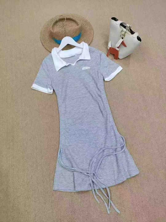 [月亮]:纯欲Polo领抽绳收腰显瘦连衣裙