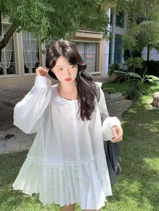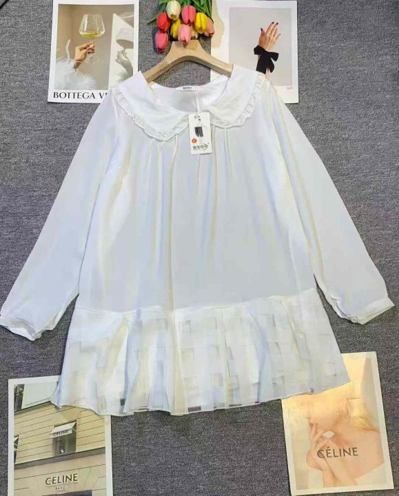 韩版甜美温柔减龄娃娃领长袖衬衣,[爱心]60件左右,码数S-XL,穿70-130斤,[666]工厂原包装瑕疵,(模特图仅供参考)