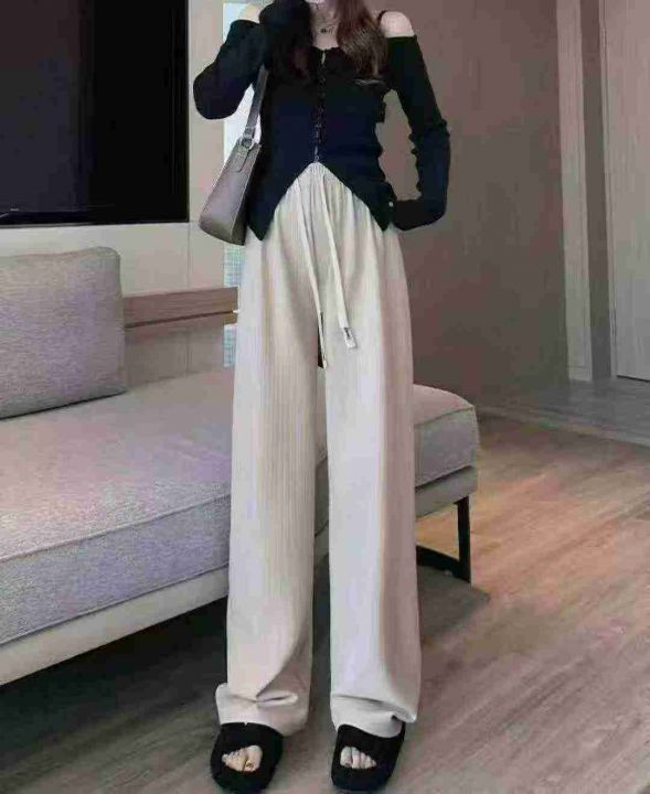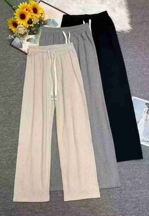 春秋新款条纹直筒阔腿松紧腰休闲长裤,独立包装,码数...