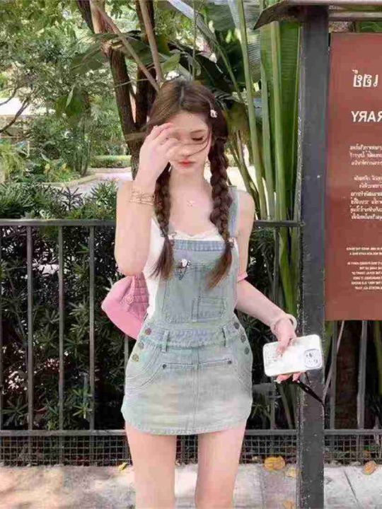 7.5清电商仓回收289件甜美韩系慵懒水洗棉牛仔背带裤裙...