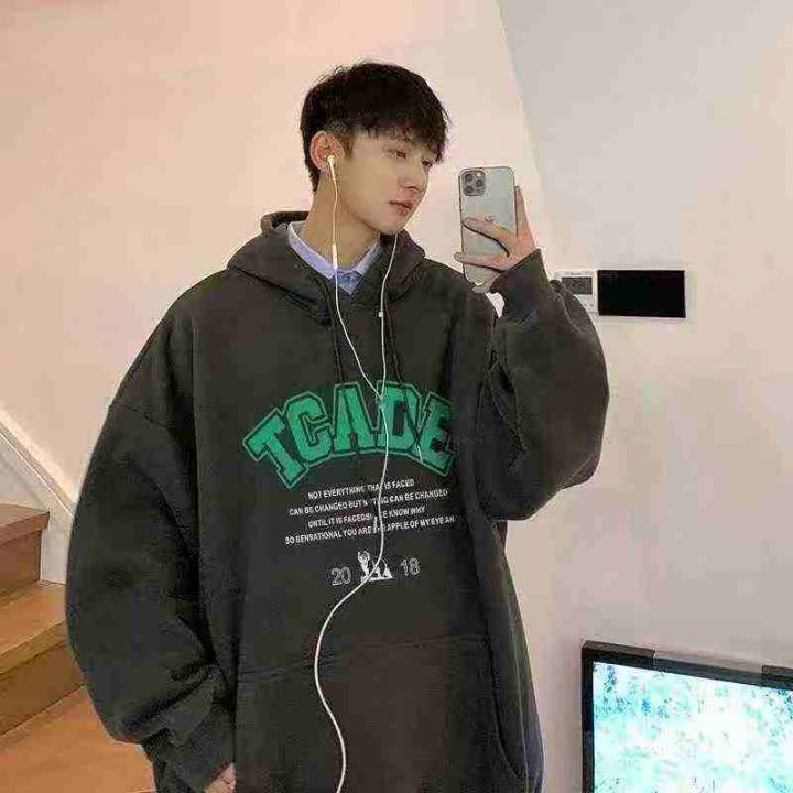 美式高街复古街头印花圆领和连帽秋季款宽松百搭男女卫...