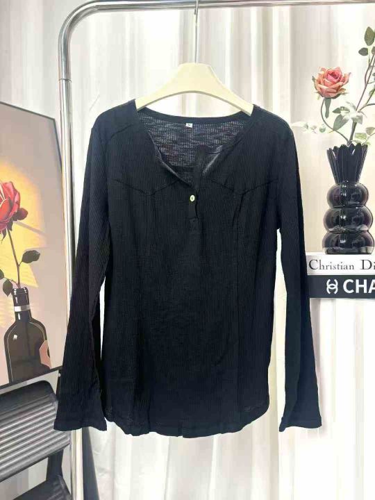 2230件韩系早秋新款宽松V领显瘦内搭打底衫上衣,含棉...