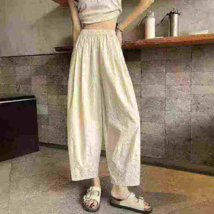 七分裤女夏季薄款宽松显瘦直筒休闲阔腿裤,麻棉梳织料,独立包装,S -2 XL...