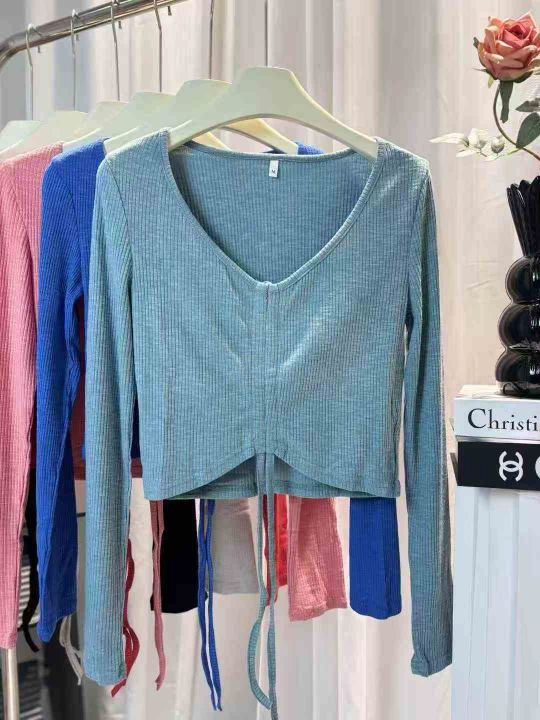 980件春装新款性感辣妹短款抽绳T恤长袖小众款高腰露脐装V领港风潮女上衣,抽绳设计可调节,含棉亲肤柔软高弹力,单款多色,尺码S-2XL,颜色相对均匀,独立拉链包装,几乎零瑕疵!福利秒杀价5.8