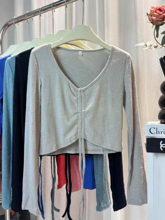 980件春装新款性感辣妹短款抽绳T恤长袖小众款高腰露脐...