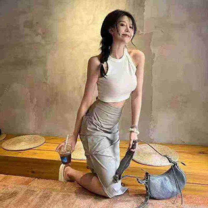 褶皱半身裙女夏季中长裙修身显瘦速干开叉半裙欧美ins辣妹工装裙,193件,码数slxl,独立包装,全清7.5元