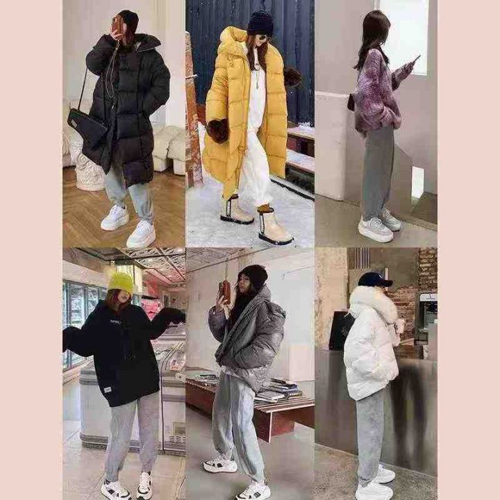405条白色休闲高腰加绒裤子女装秋冬季直筒束脚卫裤,...