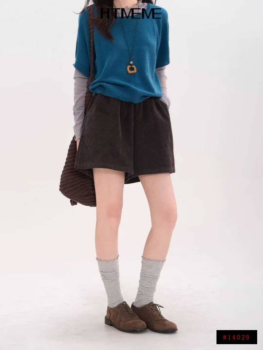 上新全清:8.8一件复古松紧腰灯芯绒宽松显瘦短裤,[爱...