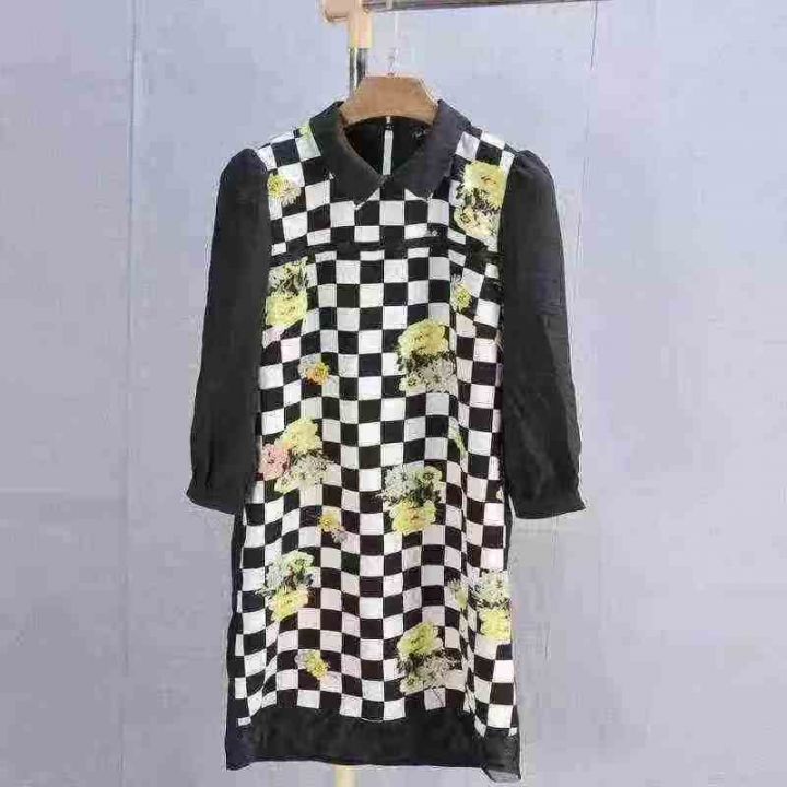 3.5元秒杀[發][發] 新款印花气质修身显廋长袖格子,白色地方轻微染色,独...